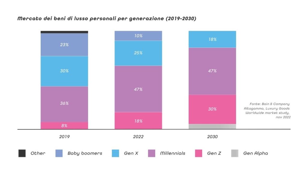 Inoltre, si accentua lo share tra i Millennial e Gen Z: negli ultimi due anni queste generazioni hanno infatti generato il 77% delle vendite. Entro il 2030, sarà la Gen Alpha a costituire 173 del mercato.