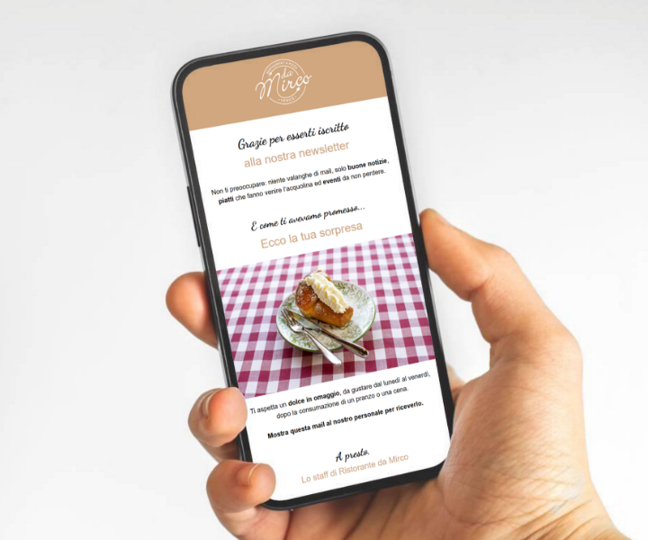 È stata attivata una strategia di newsletter per comunicare in modo diretto ed efficace con i clienti, informandoli su novità, menù speciali, serate a tema e comunicazioni importanti. Le email sono state progettate per essere chiare, accattivanti e facilmente fruibili, contribuendo a mantenere vivo il rapporto con il pubblico e incentivare visite e prenotazioni.